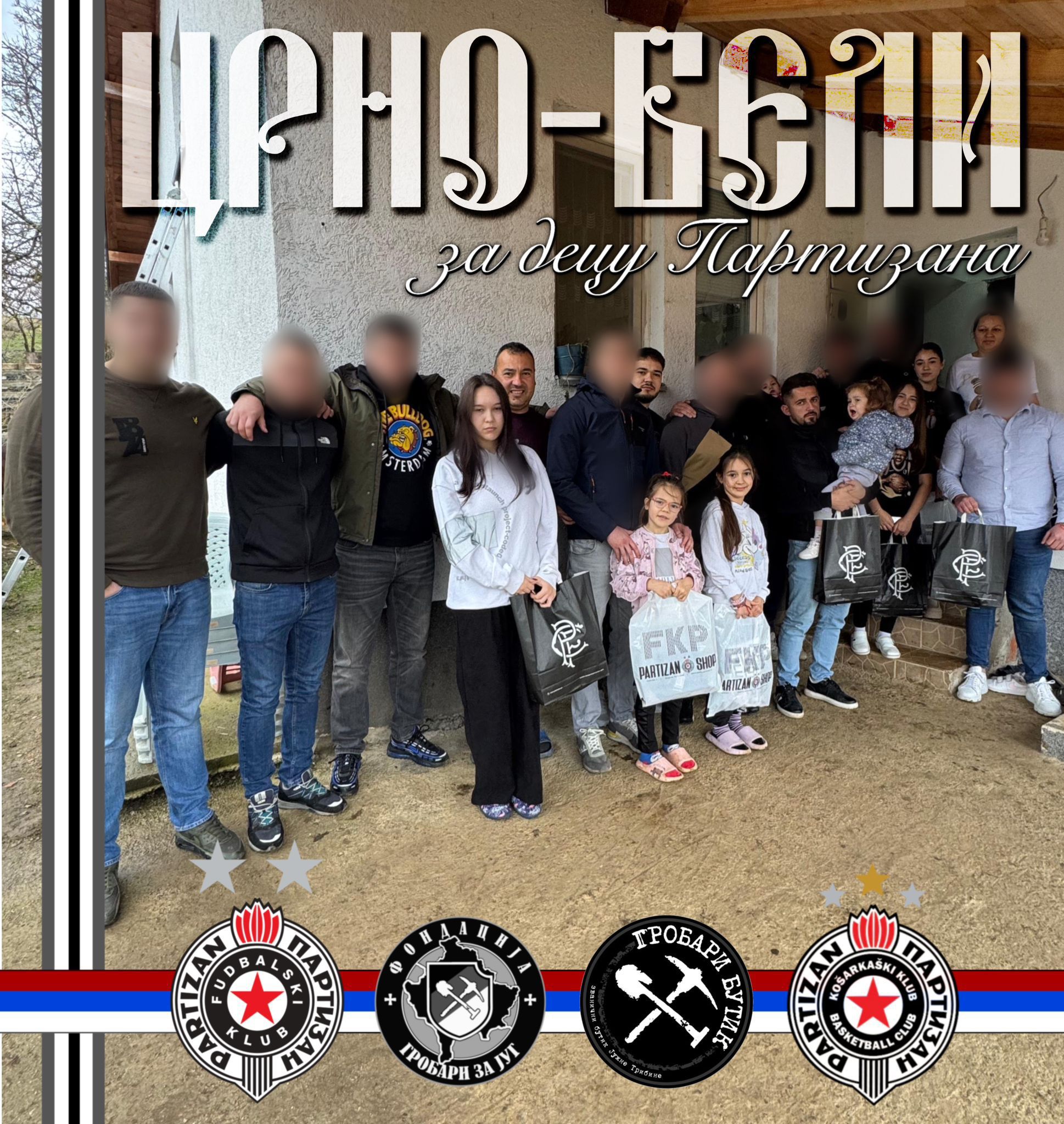 Црно-бели за децу Партизана На православни празник Оци, 4. јануара 2026. године, представници Фондације „Гробари за Југ“ посетили су село Чујковац у општини Ново Брдо на Косову и Метохији и том приликом обрадовали 14 најмлађих, уручивши им празничне поклоне донете из бутика ФК Партизан, КК Партизан и бутика „Гробари“. Иако сва деца нажалост нису била присутна у датом моменту, део поклона је преузет на лицу места. Литургија у манастиру Грачаници, препознатљиво гостопримство, радост и осмеси на лицима мештана Чујковца, који су без изузетка присталице црно-белих, остају непролазни утисци које носимо у срцу и снажан подстрек да и убудуће доприносимо опстанку и останку нашег народа на његовим вековним огњиштима. НЕМА ПРЕДАЈЕ! КОСМЕТ ВЕЧНО ЗЕМЉА НАША!