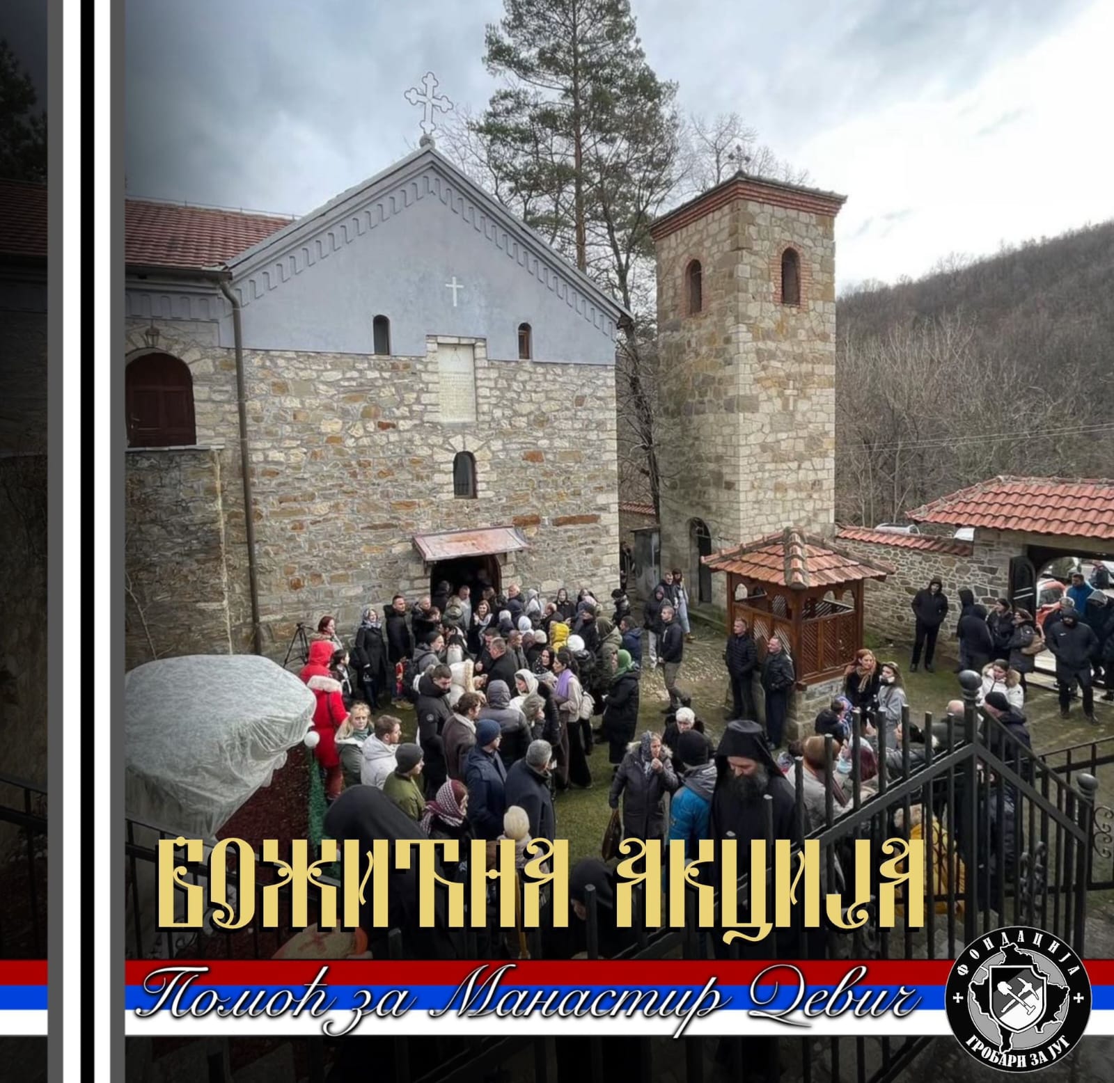 БОЖИЋНА АКЦИЈА “Гробари за Манастир Девич” По благослову епархије Рашко-призренске и мати игуманије Анастасије, покрећемо Божићну акцију прикупљања средстава за помоћ манастиру Девич. Девич је женски манастир Српске православне цркве у области Дренице, у шуми подно планине Девич, око 5 км јужно од Србице (Скендераја), у атару села Лауша. Манастир је подигао деспот Ђурађ Бранковић око 1434. године, као знак захвалности за чудесно исцељење своје кћери молитвама преподобног Јоаникија Девичког, чије свете мошти почивају у манастиру (упокојио се 1430). Главна црква посвећена је Ваведењу Пресвете Богородице. Комплекс је више пута надзиђиван и данас обухвата више сакралних целина: главну цркву Ваведења, параклис над гробом Св. Јоаникија и мање храмове. Живопис је у више слојева; натпис из 1578. године сведочи о обнови и живописању тог доба. У мартовском погрому 2004. године манастир је тешко пострадао — храм и конаци су опљачкани и спаљени, а светиња је оскрнављена. Захваљујући труду Епархије рашко-призренске и међународних мисија, манастир је обновљен и у њему је поново оживео монашки живот. Потребно је сакупити средства за поплочавање манастирске порте (дворишта) каменим коцкама. Средства ћемо прикупљати до Божића, путем донаторских кутија на свим утакмицама Партизана, што фудбалским, што кошаркашким, продајом хуманитарних мајица, а такође је могуће донацију уплатити на рачуне Фондације (са назнаком за Манастир Девич) који се налазе на крају објаве. Својим малим доприносом свако од нас се уграђује у обнову светиње, уписујемо се у вечност, а такође шаљемо и поруку да стојимо уз наш напаћени народ и Цркву на нашем, окупираном, Косову и Метохији. Стога позивамо све навијаче Партизана, а и остале људе добре воље, да се укључе и узму учешће у овој хуманитарној акцији. НЕМА ПРЕДАЈЕ! КОСМЕТ ВЕЧНО ЗЕМЉА НАША!
